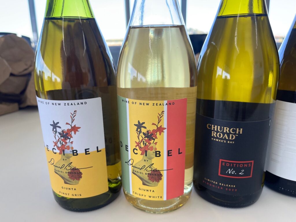 Decibel Giunta Pinot Gris 2024 is a rose gold colour in the glass. A generous, ripe bouquet has honey, pineapple, ginger and freshly cut pear. The golden continues into the palate, which is smooth, elegant and lightly spicy. A dry finish rounds out a treat start to the day. I’d be happy to have a glass of this with a meal anywhere. 91pts. The same label is up next – Decibel Giunta Crispy White 2024 – a white blend that I have had in previous vintages, and enjoyed. The blend for 2024 is 32% Pinot Gris, 32% Sauvignon Blanc, 21% Chenin Blanc and 15% Albariño. A pale lemon-green colour in the glass. The perfume has an inviting sappiness to it, with green herbs, lime, nectarine, preserved lemon and even a little white smoke on the nose. A bright zing of acidity gives lots of energy and movement in the palate. A touch of phenolic adds complexity, before a smooth, oatmeal character and texture envelop the back of the palate. A grassy, juicy finish ends sweeter and very refreshing. 91pts