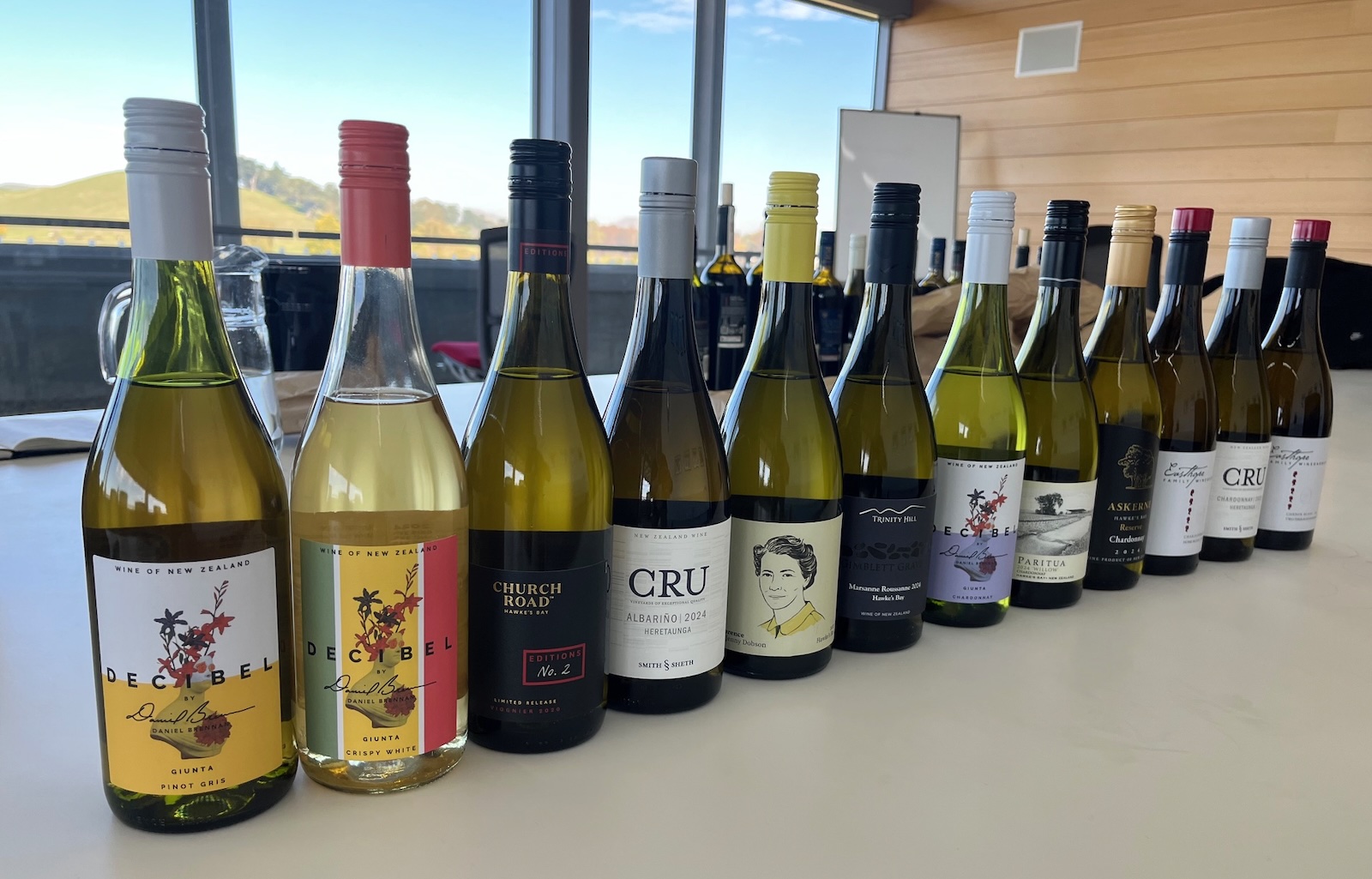 A big shout out to Sarah White and Brent Linn from Hawke’s Bay Winegrowers for organising this. I know from arranging my own tastings what a mission it can be to get a collection of bottles together from people who are all very busy, in one place at one time. So credit is due to them. And a thank you to Paritua for hosting me at their beautiful boardroom. I try not to get distracted by the view.