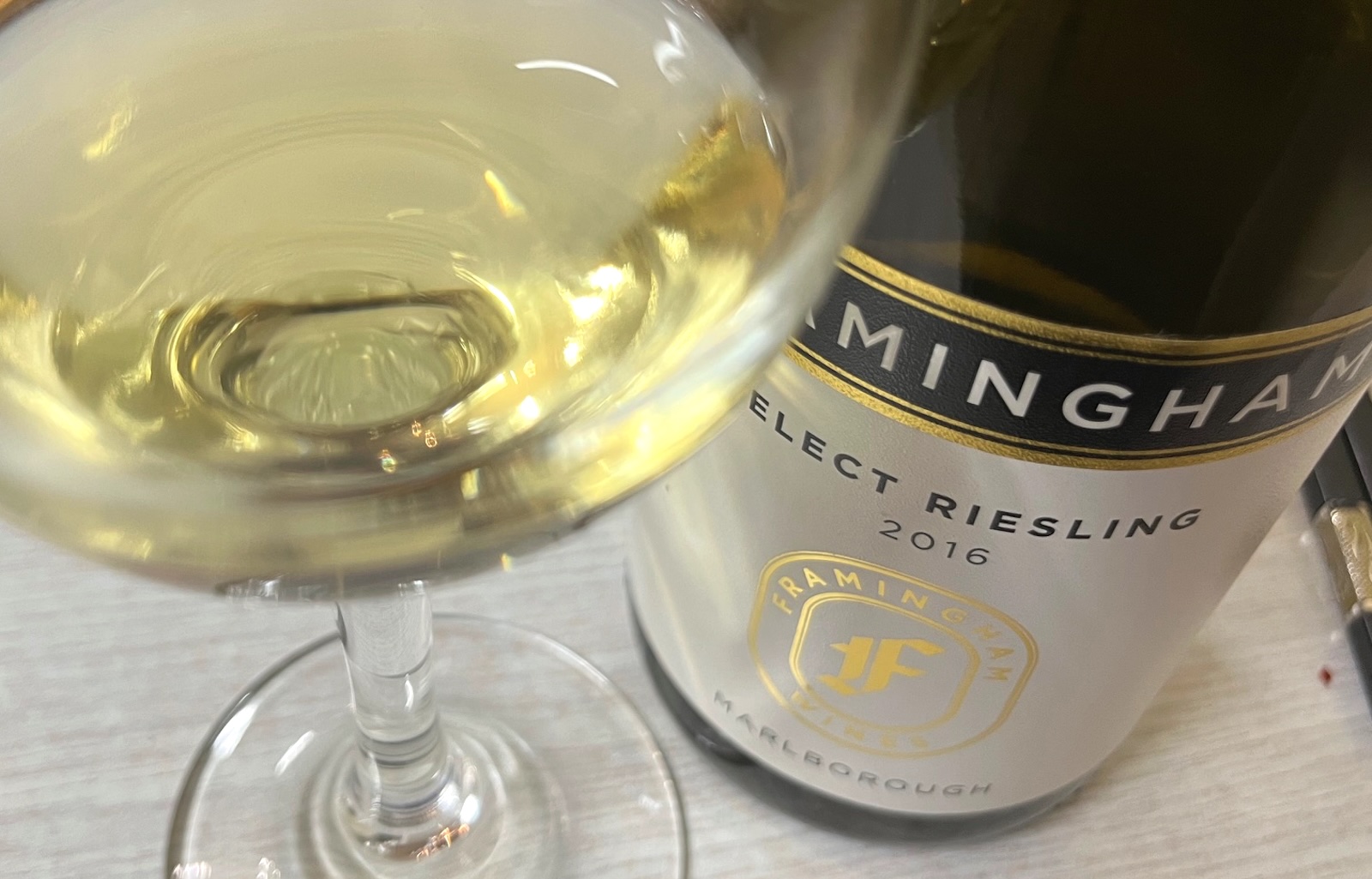 I’m not one to turn down the opportunity to try wines side by side that have a few years age difference – wine is always a learning game, and the more you taste, they more you can understand. Today is a pair of one of Framingham’s range of riesling – they make wines ranging from bone dry to dessert, and ‘Select’ is based on the German style of ‘Spätlese’. To us that really means it is off-dry, and has lower alcohol levels – 8.5% and 9% respectively. Made by two winemakers – the earlier version would be Andrew Hedley; and now it is Andrew Brown in charge at Framingham.
