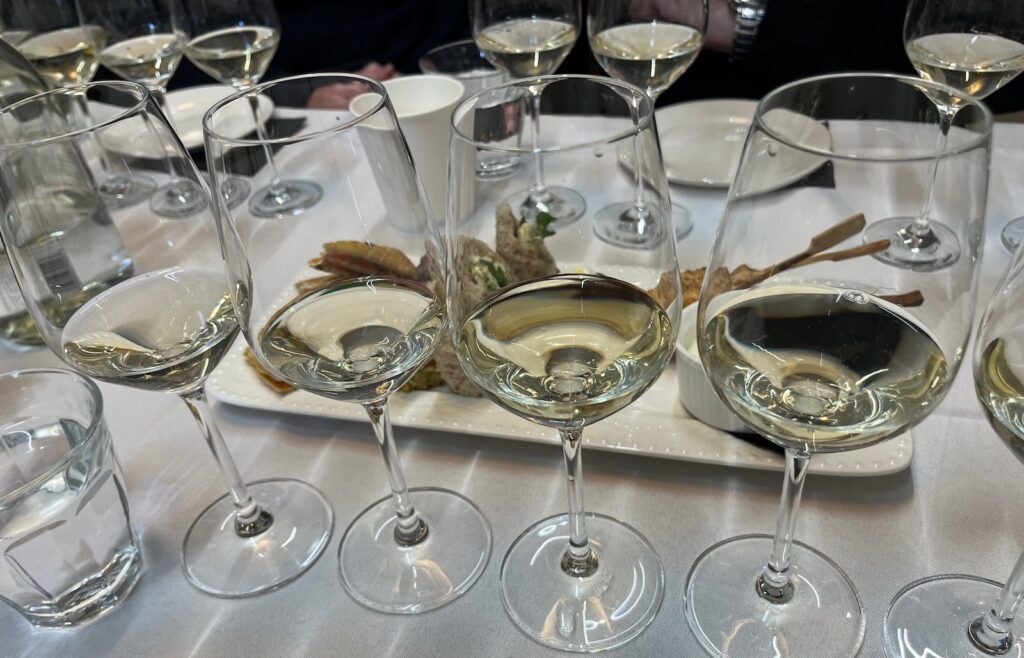 The second wine in the line up is the Kumeu River Estate Chardonnay, which has been made since 1985 using the best selection of what they had available from Kumeu. It’s now made from six vineyard sites and immediately shows the difference between Hawke’s Bay limestone and Kumeu clay. An age-worthy, complex and layered expression – perhaps a reflection of the lower yields this year? This could be the star of the vintage – at the price, certainly. A bright lemon, and grapefruit character sits alongside the peach, almond, lime curd and greengage in the bouquet. A zing of bright acidity forms a core and I don’t normally say this – but this one could do with a little more time in bottle to show its best.