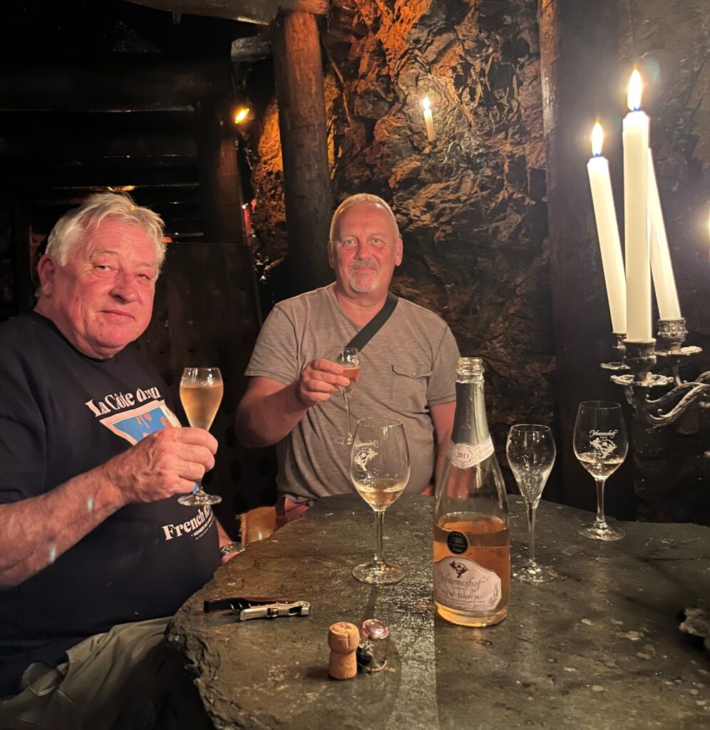 At the end of the short walk through the rock there is a table set up, and Edel, Warwick and myself settle down for a chat and a few samples. We start off with a ‘New Dawn’ Méthode Rosé 2011. It’s quite a special spot, and the wine fits the setting.