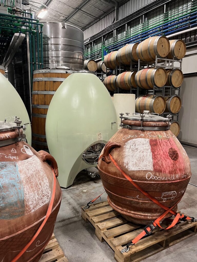 As an organic winemaker it is nice to have versatility with our more limited toolbox. I’ve worked in places that are a lot more cramped, so I am appreciative to have this much space. We have a range of vessel types and sizes. We have amphora here from Tuscany. We have concrete eggs. We have wooden cuves, which are 3500 hectalitres, and the various stainless steels. Barriques, and puncheons. So we can guide our winemaking style according to the appropriate vessel, in various components.