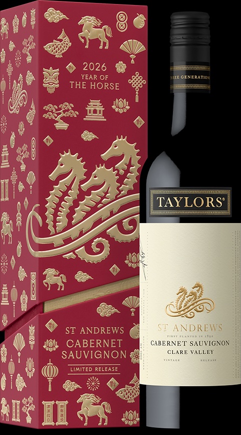 To celebrate the arrival of the Year of the Fire Horse on 17 February 2026, family-owned wine brand Taylors Wines introduces two exclusive Lunar New Year gift boxes featuring wines from its acclaimed St. Andrews collection, each proudly adorned with Taylors bold and iconic seahorse emblem, which was adopted after the discovery of fossilised seahorses on the family estate in Clare Valley in 1969. Today, it symbolises Taylors’ commitment to quality and sustainability.